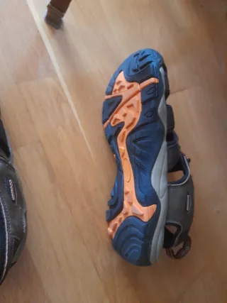 Sandalias deportivas de color marrón, ideales para actividades al aire libre. - Cierre de cordones. - Tira de ajuste en el talón. - Suela de goma. - Detalle de tiras naranjas.