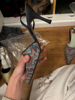 Elegantes sandalias de la marca Zara, perfectas para añadir un toque de brillo a tu atuendo. - Diseño con tiras entrelazadas. - Adornadas con pedrería brillante. - Cierre de hebilla ajustable. Escucho ofertas