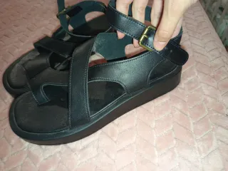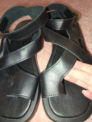Estilo rock / biker – Muy cómodas y resistentes Vendo estas sandalias negras de estilo rocker / urbano, con diseño lleno de detalles metálicos, hebillas y tachas laterales. Son de piel, muy duraderas y con un diseño exclusivo que aporta carácter a cualquier look. ✔️ Características: • Talla: 37 (mujer) • Material: Piel auténtica • Color: Negro con herrajes metálicos • Detalles: Hebillas ajustables, ojales metálicos, tachas laterales • Diseño: Rock / Punk / Biker, muy diferente a lo habitual • Suela cómoda y apta para caminar varias horas