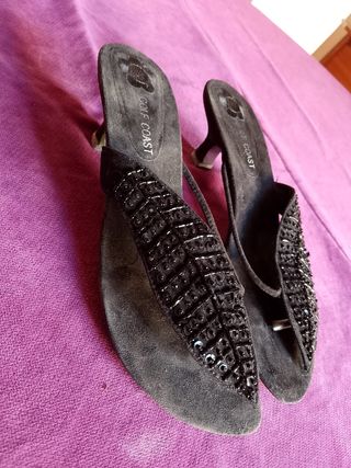 Elegantes sandalias de tacón con un diseño adornado. - Material exterior de ante. - Adorno de pedrería y lentejuelas. - Tacón fino.