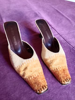 Elegantes sandalias tipo zueco con un diseño tejido. - Material exterior tejido. - Tacón de bloque. - Diseño abierto en la punta.
