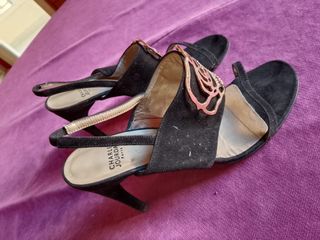 Sandalias de tacón. Son de color negro y marrón, con un diseño elegante y cómodo. - Material de alta calidad. - Tacón de madera. - Hebilla de cierre. - Suela de cuero. Talla 36. Con caja. Costó 40€ NO SE REBAJA MÁS!!!
