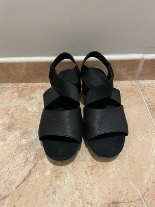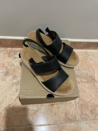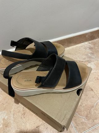 Sandalias negras clarks talla 39 con su caja. Tiene suela blanca Sandalias Clarks de color negro. - Diseño con tiras. - Cierre de velcro. - Suela cómoda.