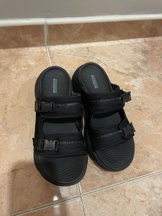 Sandalias Skechers para mujer en color negro. Diseño moderno y cómodo. talla 39 - Tiras ajustables con hebilla. - Suela con relieve. - Logo en las tiras.