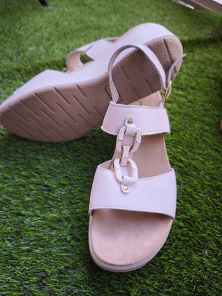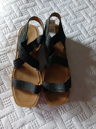 Sandalias de cuña con un diseño moderno y elegante. Perfectas para añadir un toque de estilo a tu look. - Tiras cruzadas en la parte delantera. - Cierre trasero con tira. - Suela cómoda y resistente.