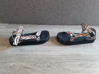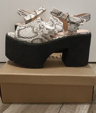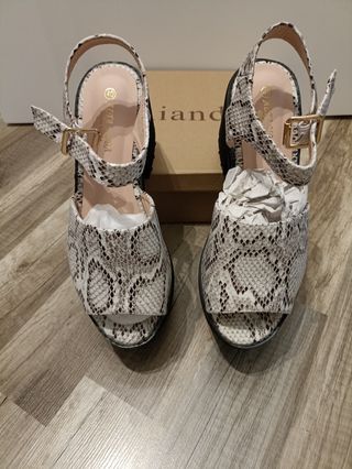 Sandalias con un llamativo estampado animal print y una plataforma gruesa, tacon de 10cm y plataforma de 6cm, atadas al tobillo, muy guapas y super comodas, nuevas a estrenar! #sandaliasanimalprint #sandaliasplataforma #sandaliastaconancho #sandaliasplataforma #pvporiginal25,99€ - Diseño de tiras. - Cierre de hebilla. - Tacón cuadrado.