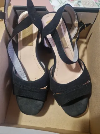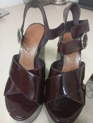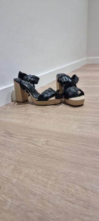 Sandalias de tacón con plataforma y suela dentada. - Diseño abierto. - Tira en el tobillo con cierre de cremallera. - Muy cómodas - Tacón grueso. Usadas dos veces