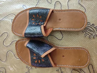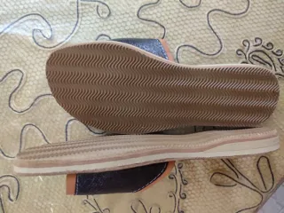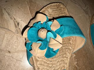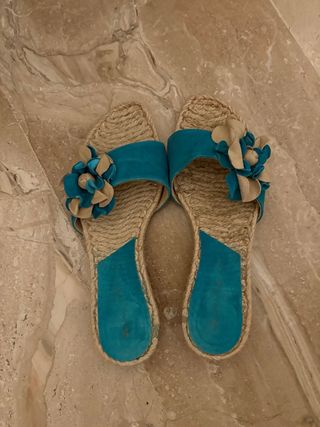 Sandalia plana destalonada Color turquesa y beige Muy cómoda