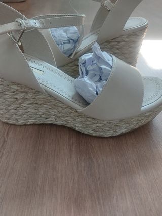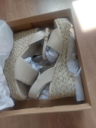Sandalias de cuña con un diseño moderno y cómodo. - Tira con hebilla ajustable. - Detalle de textura en las tiras. - Suela de esparto. ENVIO punto de recogida