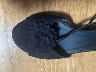 Elegantes sandalias de tacón bajo con un diseño delicado. Tacón de 4 cm con rozadura en la planta de los pies - Tacón bajo para mayor comodidad. - Adorno floral en la tira delantera. - Cierre de hebilla ajustable.