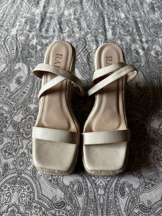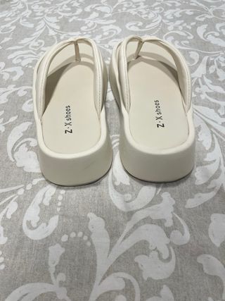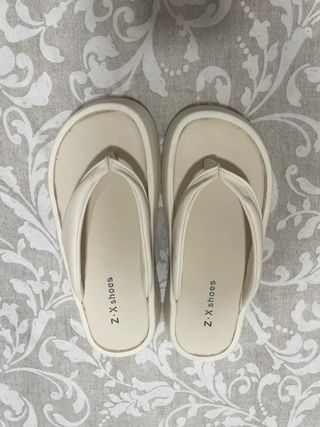 Sandalias de plataforma de la marca Zara en color blanco. Perfectas para un look casual. - Diseño de tiras finas. - Suela cómoda.