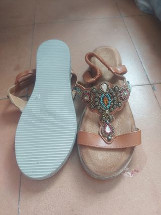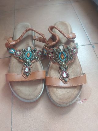 Sandalias de verano con un diseño étnico y adornos. - Tira elástica en el talón para mayor comodidad. - Detalle de abalorios y círculos metálicos en las tiras. - Suela cómoda para el día a día.