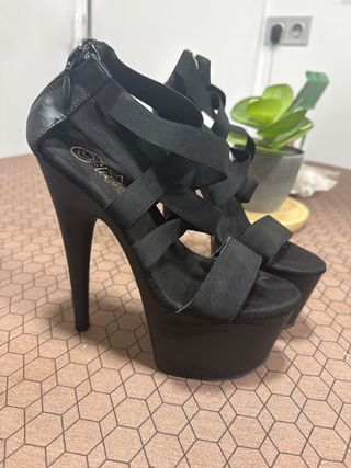 Sandalias de tacón alto con plataforma. - Diseño con tiras elásticas cruzadas. - Cierre de cremallera en el talón. - Tacón de aguja.