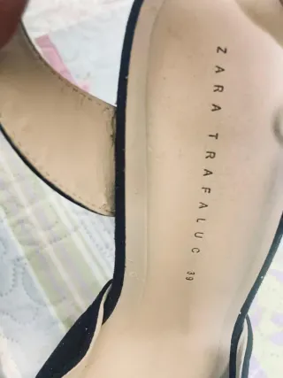 Elegantes tacones de la marca Zara. - Diseño de tiras. - Tacón de aguja. El problema es que la piel interior ha empezado a deteriorarse y no se ha reparado adecuadamente, pero si alguien sabe arreglarlo desde dentro, es suyo.