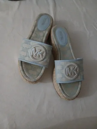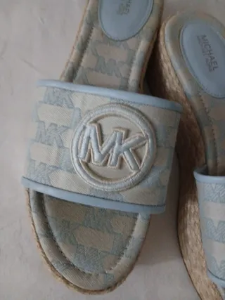 Chanclas de cuña con un diseño moderno y cómodo. - Logo MK en la tira. - Estampado de monograma MK. - Plataforma de esparto.