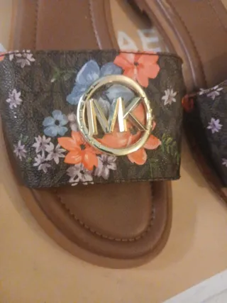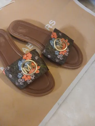Chanclas de Michael Kors con un bonito estampado floral. - Diseño de pala. - Detalle de logo MK dorado. - Estampado multicolor sobre fondo marrón.