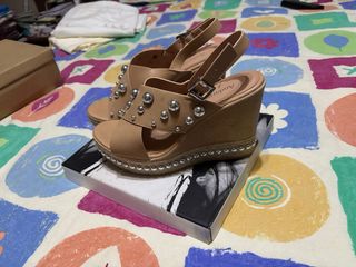 Sandalias cuña beige con tachuelas plateadas