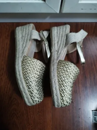 Sandalias cuña Heeshoes T36 blancas y doradas