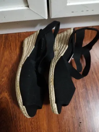 Sandalias de cuña con tiras elásticas. Muy comodas - Diseño abierto en la punta. - Suela de esparto.
