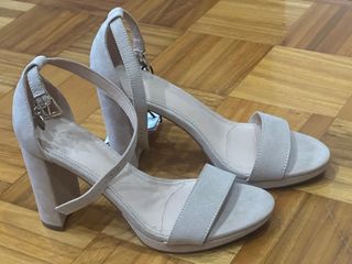 Elegantes sandalias de tacón con un diseño moderno. - Material exterior de ante. - Tira fina en el tobillo con cierre de hebilla. - Plataforma delantera para mayor comodidad.