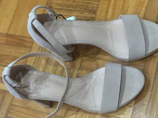 Sandalias de tacón blancos, son una 36, de Shein, se ve en las suelas que apenas han sido usadas, tienen un pequeño desperfecto en uno de los tacones que se ve en las fotos