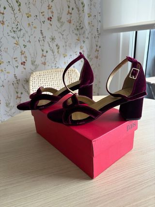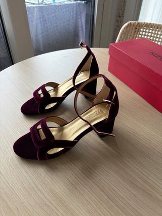 Sandalias Terciopelo Burdeos. Talla 40. Tacón 6 cm