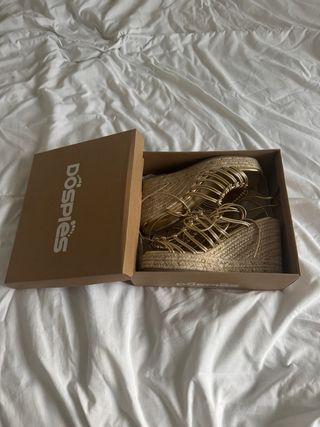Vendo sandalias de color beige con plataforma. Acabado de esparto. Utilizadas muy poco. PRECIO NEGOCIABLE