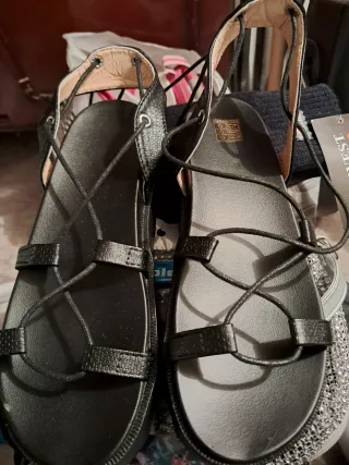 Sandalias negras con diseño de tiras. - Cierre con cordones. - Diseño tipo gladiador.