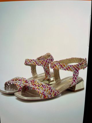 Sandalias de la marca Xti con un diseño trenzado y detalles en varios colores. - Diseño trenzado en la pala. - Tira al tobillo con hebilla. - Tacón bajo metálico.