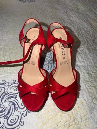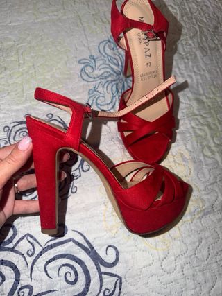 Sandalias Rojas Talla 40 Plataforma Tacón Aguja