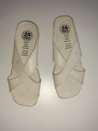 Sandalias estilo mocasín con un diseño elegante. - Diseño abierto en el talón con tira. - Detalle de tiras en la pala. - Suela interior con logo de la marca. Usadas solo un ratito