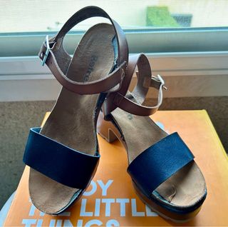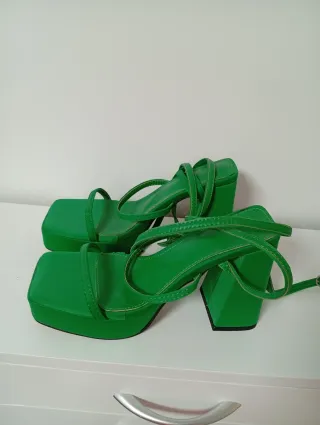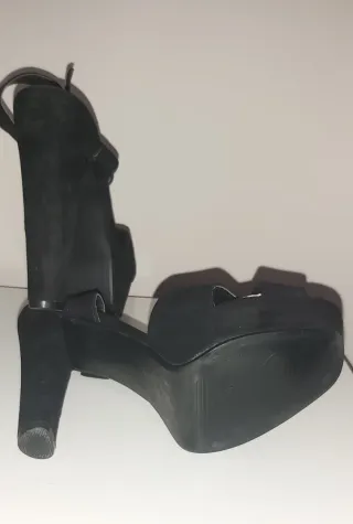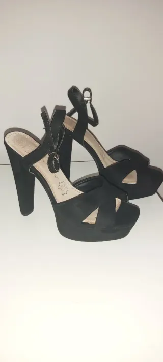 Sandalias de tacón grueso con plataforma. Son de piel. Las plantillas están algo estropeadas a pesar de que me los he puesto no más de 5 veces. Las plantillas se pueden cambiar.