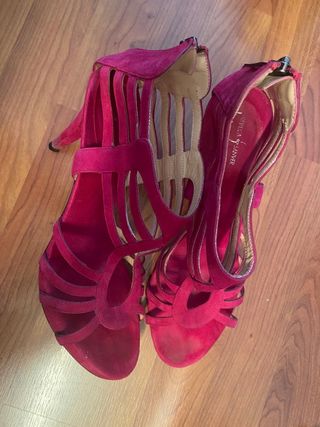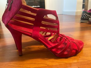 Sandalias de tacón rojas de la marca Rucoletti. Son preciosas y elegantes, ideales para cualquier ocasión especial. - Material de ante. - Diseño con lazo. - Tacón fino.