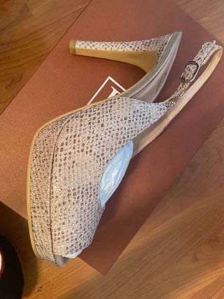 Sandalia de piel serpiente. Plataforma de 2 cm. Tacon 6 cm. Muy comoda.