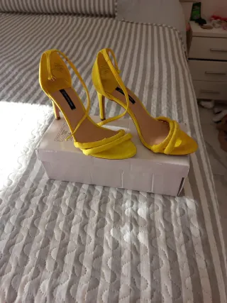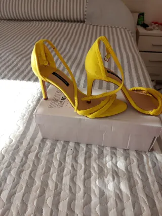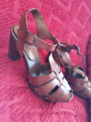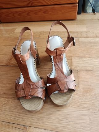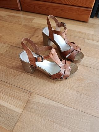 Sandalias de tacón con plataforma. - Correa ajustable al tobillo con hebilla. - Tacón grueso y alto. -Es una 36, pero para una 37 tambien valdria