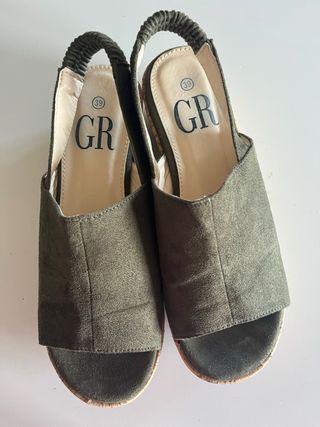 Sandalias de mujer con un diseño moderno y cómodo. - Color verde oliva. - Plataforma para mayor altura. - Tira elástica en el talón para un ajuste seguro.