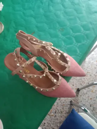 Elegantes sandalias de la marca Alma en Pena, perfectas para añadir un toque de brillo a tu look. Le falta una piedra pero no se aprecia ya que es del mismo color que el enganche última foto.