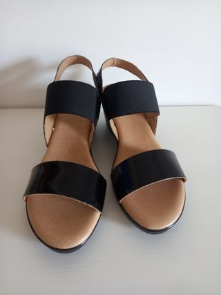 Elegantes sandalias de tiras. - Tira frontal ancha y brillante. - Tira trasera elástica para un ajuste cómodo. - Plantilla suave para mayor confort.