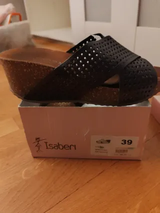 Sandalias de cuña de la marca Isaberi. Diseño moderno con tiras caladas. - Material exterior: sintético. - Forro: sintético. - Suela: goma. - Altura de la cuña: 8 cm aprox.