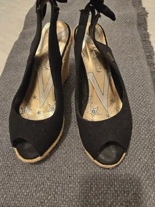 Preciosas sandalias en color negro. Puestas en muy pocas ocasiones. Se entregan limpias. Aunque indique 42 son para un 40, miden 26,5 cm 🚛 Hago envíos por la app o entrego en mano en Rubí zona ayuntamiento