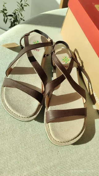 Sandalias planas de cuero auténtico para mujer, talla 37. NUEVAS, nunca usadas. Muy cómodas y ligeras, perfectas para verano o uso diario. Fabricadas en España. Color beige y marrón fácil de combinar. Precio original: 35 €. Ideales para quien busca sandalias de calidad a buen precio. Solo envío, no presencial.