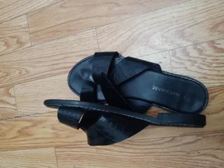Sandalias estilo chancla de tacón con cuña en color marrón. NUEVAS. Me las he probado y lucen muy cómodas, pero tengo el pie muy fino y tendría que haber pedido una talla menos.