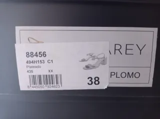 Sandalias de tacón con un diseño moderno y atrevido. Por dentro de la correa de abrochar tiene desgaste por fuera están perfectas tal cual las fotos. Quedan preciosas y son cómodas. Puestas en un par de ocasiones. - Tiras cruzadas con tachuelas plateadas. - Correa de tobillo ajustable. - Tacón grueso para mayor comodidad.