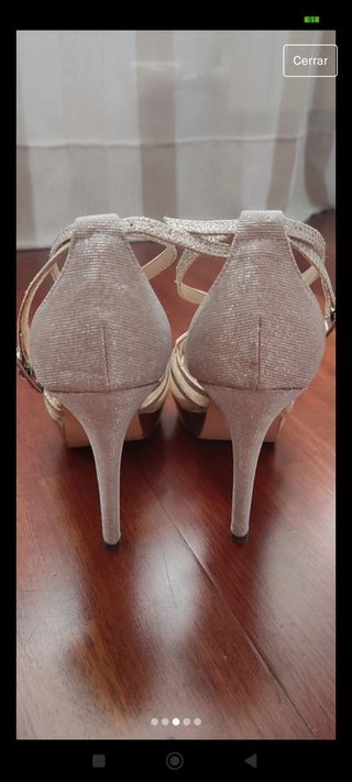 Sandalia de tacón color dorado, talla 38. 10cm de tacón y 3cm de plataforma. usadas una sola vez. ideales para fiesta o ceremonia. su precio original 150eu.