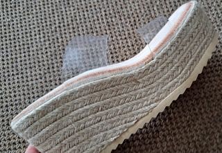 Número 37, la cuña mide 7 cm de atrás y 2 de alante, no resbalan, poco usadas aunque como se aprecia en la foto tiene un poco de desgaste de los dedos, una vez puestas no sé ve, sirven lo mismo para calle como para playa. No bajo el precio!!!