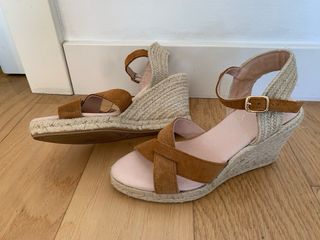 Sandalias cuña cuero marrón talla 40