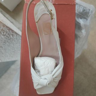 Sandalias de piel blancas, ideales para un look elegante. Son de tacón y tienen un diseño con nudo en la puntera. Se encuentran en perfecto estado. - Material: Piel - Tipo: Sandalias de tacón - Diseño: Nudo en la puntera