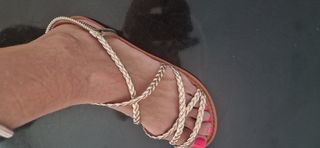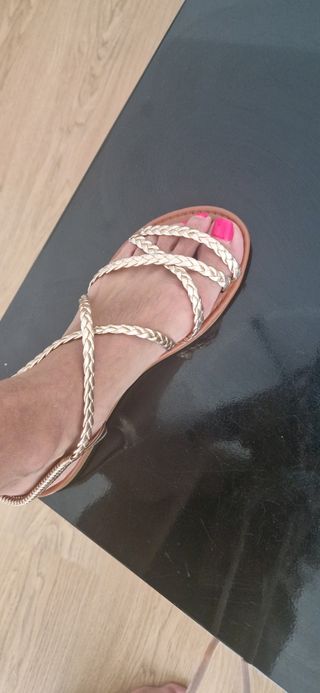 Elegantes sandalias doradas, perfectas para cualquier ocasión. Están sin estrenar. - Diseño con tiras trenzadas. - Suela cómoda y flexible.