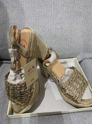 Sandalias H.A. doradas cuña esparto sin estrenar