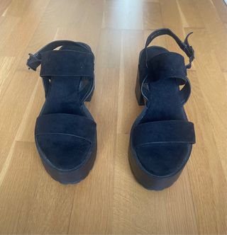 Sandalias de plataforma con un diseño moderno y cómodo. - Material exterior tipo ante. - Tira ajustable en el tobillo con hebilla. - Suela gruesa con acabado dentado.